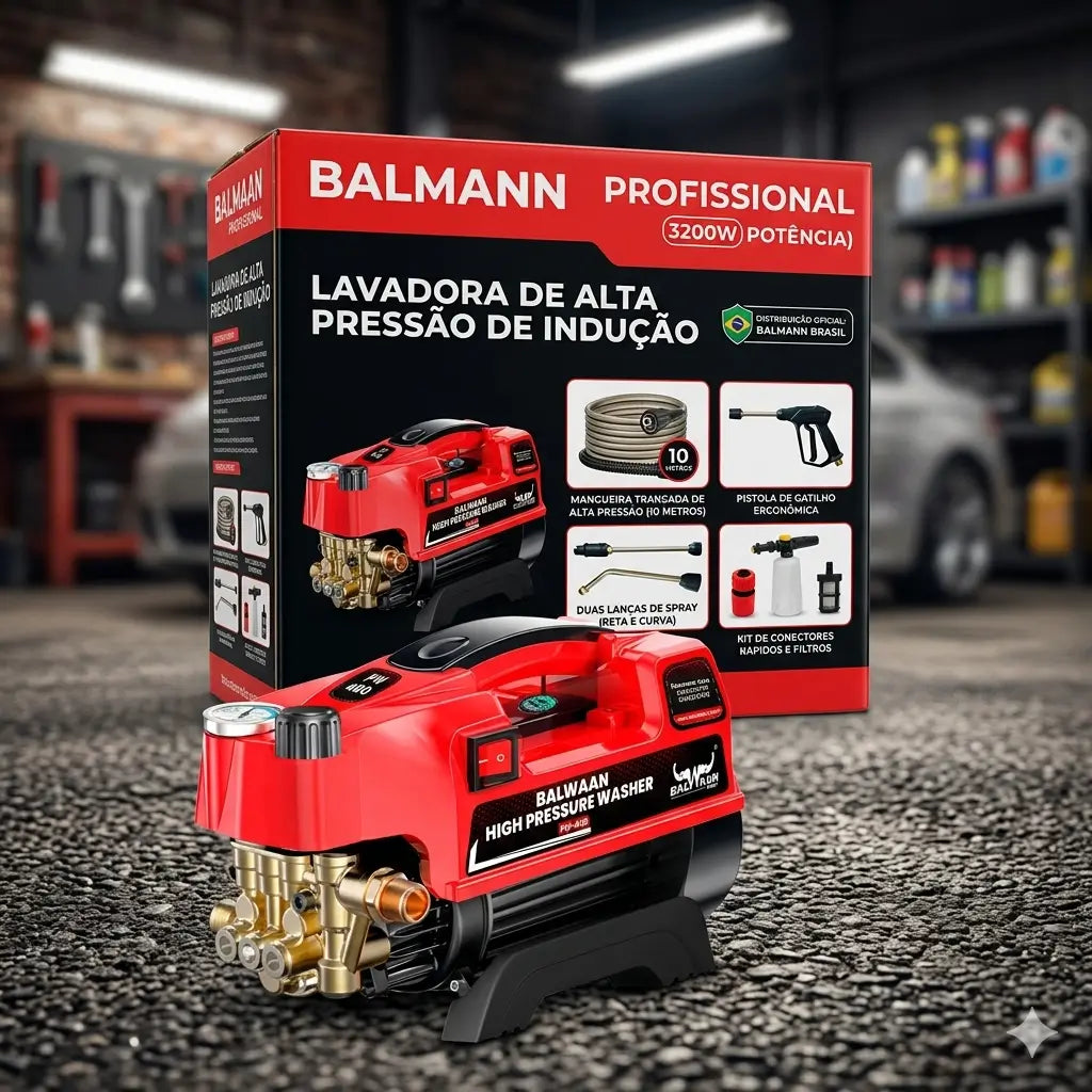 Lavadora de Alta Pressão Balmann + BRINDES: Kit de Engates e Limpeza Profissional