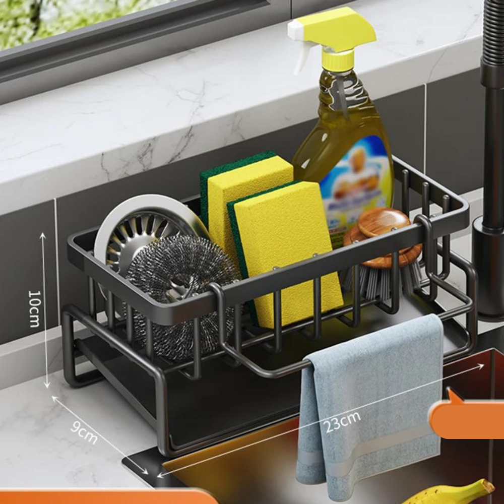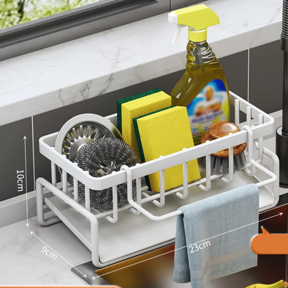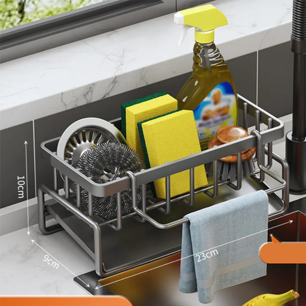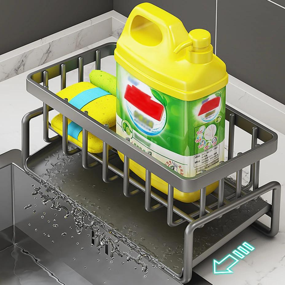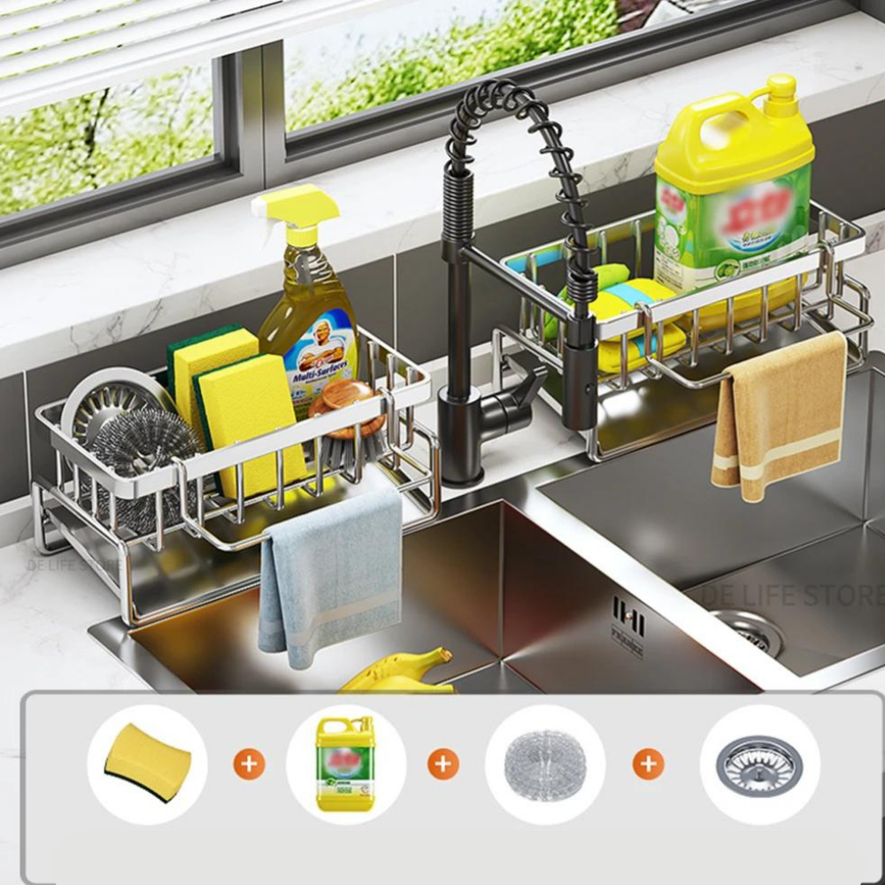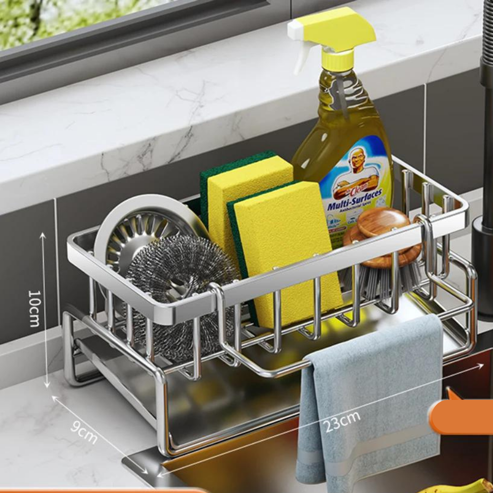 Mantenha a sua cozinha organizada e eficiente com o Organizador de Pia Auto-Drenante em Aço Inoxidável.